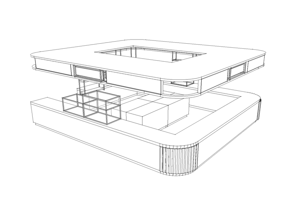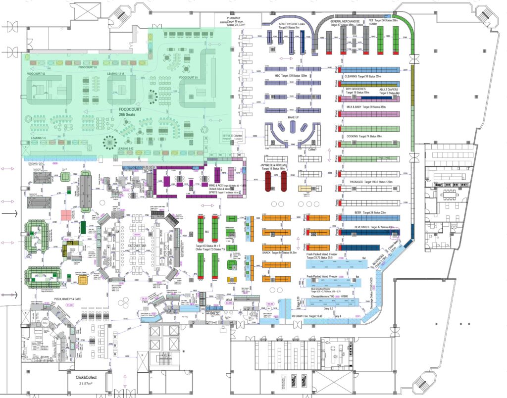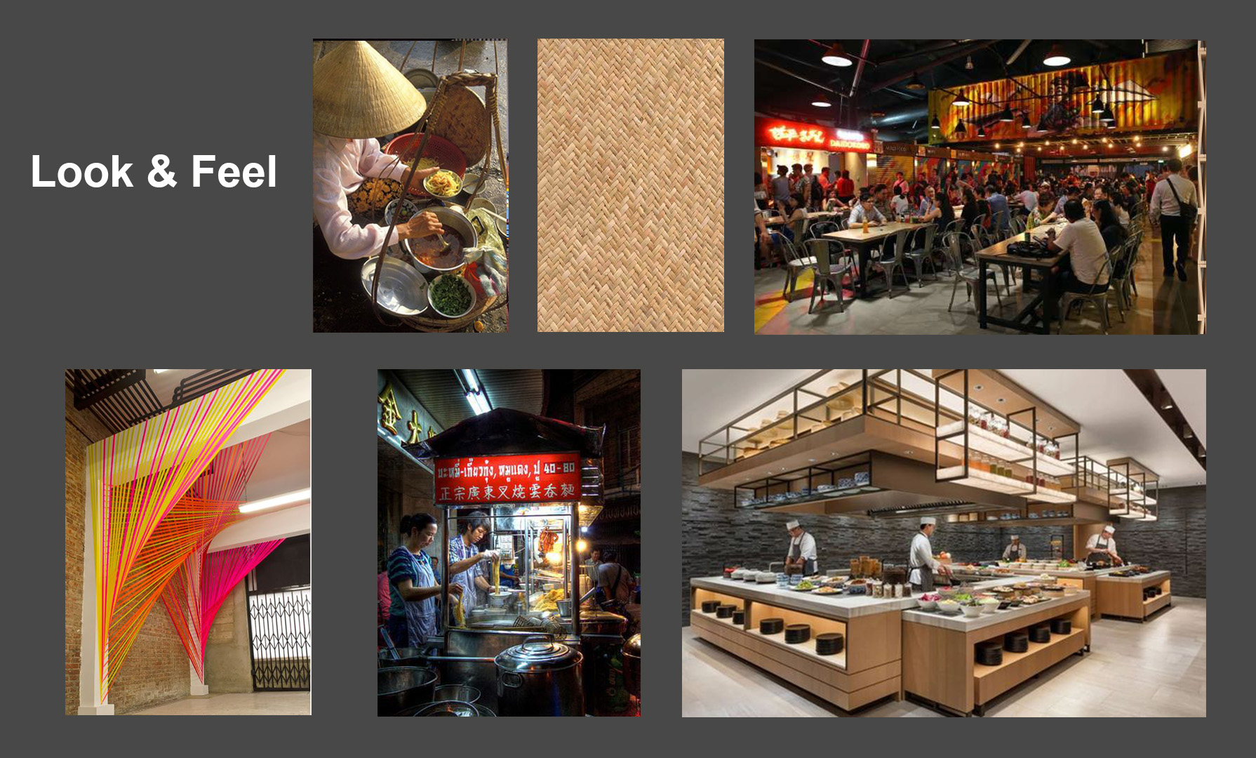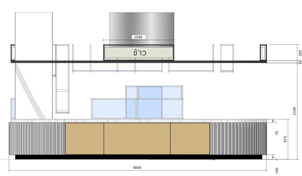 It consists of 3 main open kitchens surrounded by multiple service-units that mimic the Thai street stands with the fresh food.