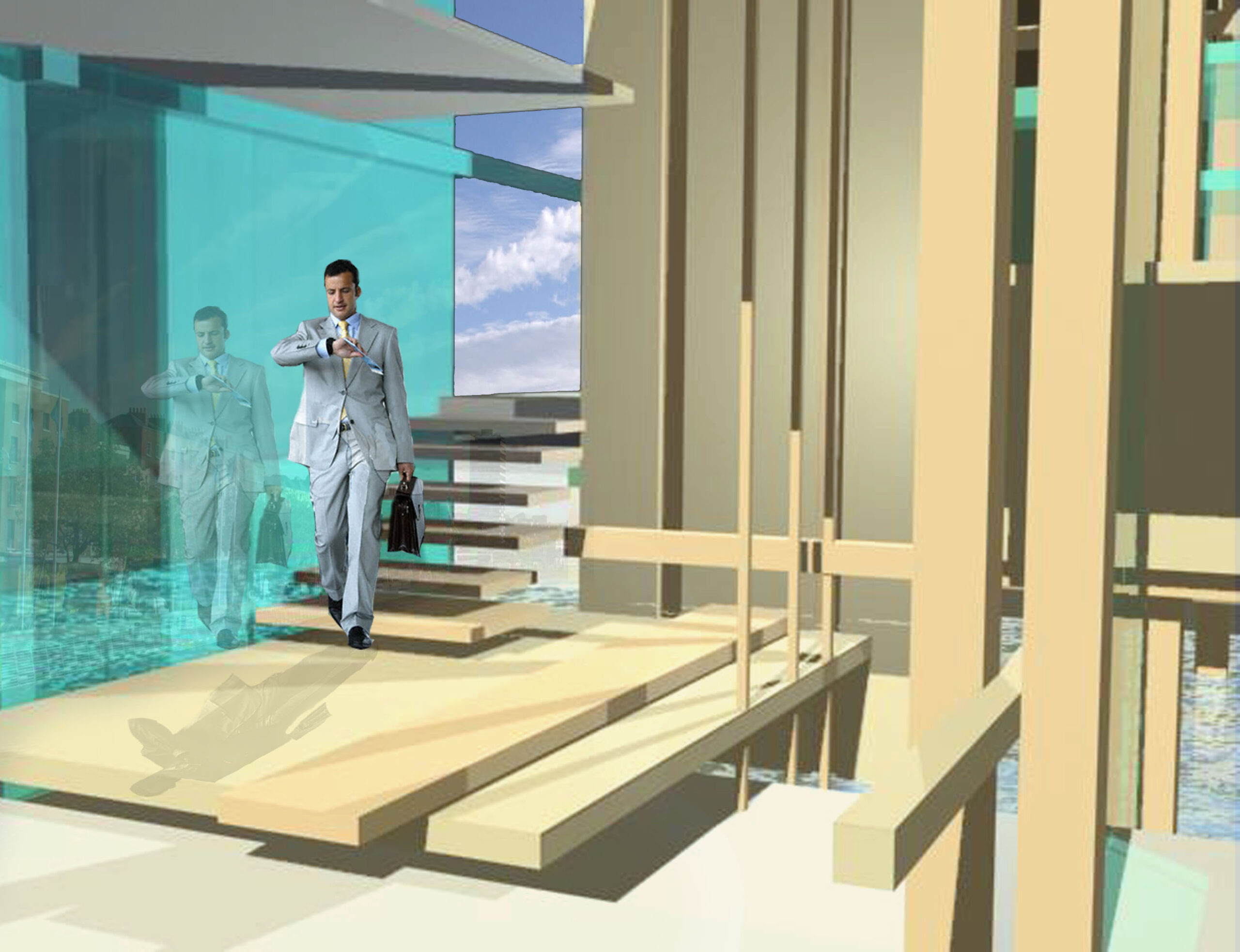 The layout of roads and buildings in a city of Dublin, led to a development of spatial organization for an architectural model. The model was placed on the Liffey River to emphasized the usage of the hydropower.